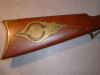 Meßing Beschlagteile mit Patchbox im Schaft eingelegt.