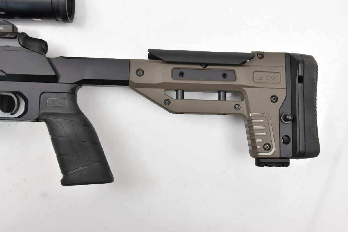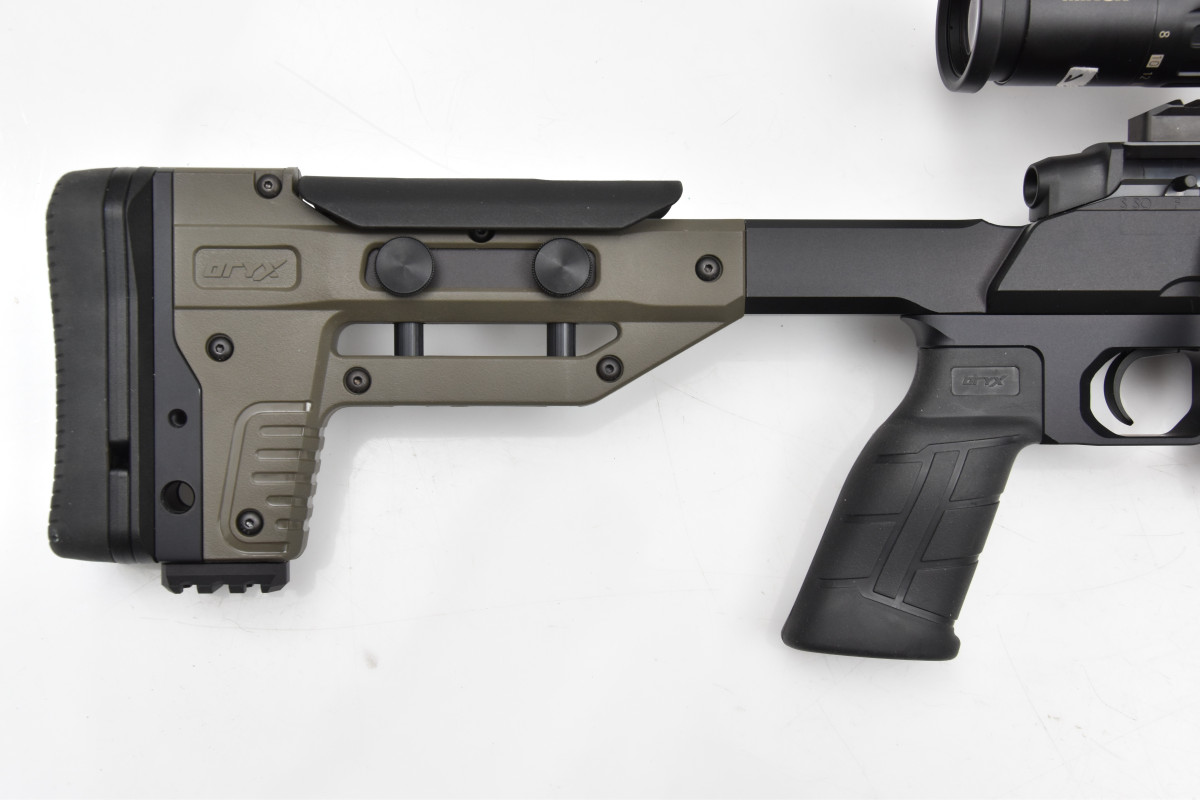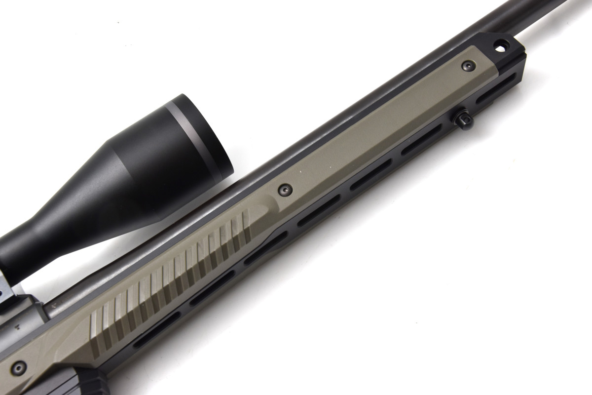 Sie bieten hier auf eine Mauser Repetierbüchse Modell M18 in der Ausführung Long Range Chassis im beliebten neuen und hochpräzisen Weitschußkaliber 6XC (6,17x48). Der Optimierte Oryx-Schaft von MDT mit Eloxalbeschichtung und Anbauteilen in Olive Dark Green, höhenverstellbarem Schaftrücken und längenverstellbarer Schaftkappe, in Verbindung mit dem robusten Stahlsystem der M18 und dem 62 cm langen schweren Matchlauf mit 22 mm Mündungsdurchmesser und Mündungsgewinde M18x1 machen diese Büchse zum Präzisionsgaranten auch auf weite Entfernungen.