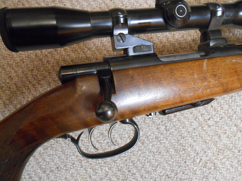 Repetierbüchse ANSCHÜTZ 1530-1534 im Kal .222Rem. SEM mit S&B 8x56 Absehen 4. Schaftlänge 365mm, Lauf ist blank. ZF lässt sich nicht aushaken wegen der Länge des Glases.