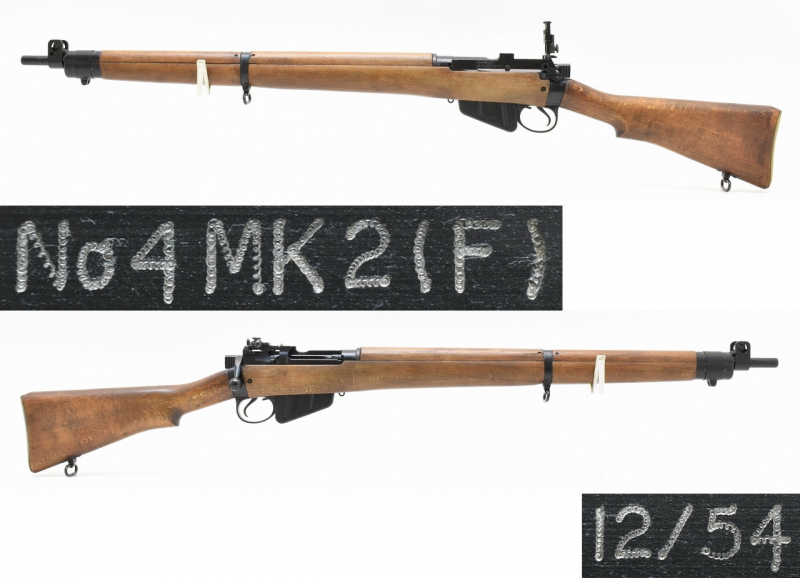 Nummerngleiches englisches Lee - Enfield Militärgewehr No.4 Mark 2 aus Nachkriegsfertigung der ROF(F) Royal Ordnance Factory Fazakerly des Jahres 1954. Höhenverstellbare Mk I Visierung mit seitenverstellbarem Parker Hale Modell 8/53 Dioptereinsatz. Spiegelblanker, fünfzügiger Enfield - Lauf. Mellrichstädter Beschuß 1995. Frankonia Vertriebsstempel. 325mm lange Schäftung für Rechts- und Linksschützen ( Schaftlänge gemessen vom Abzug bis Mitte Schaftkappe ). Mit nur leichten Gebrauchsspuren. Details siehe Bilder.