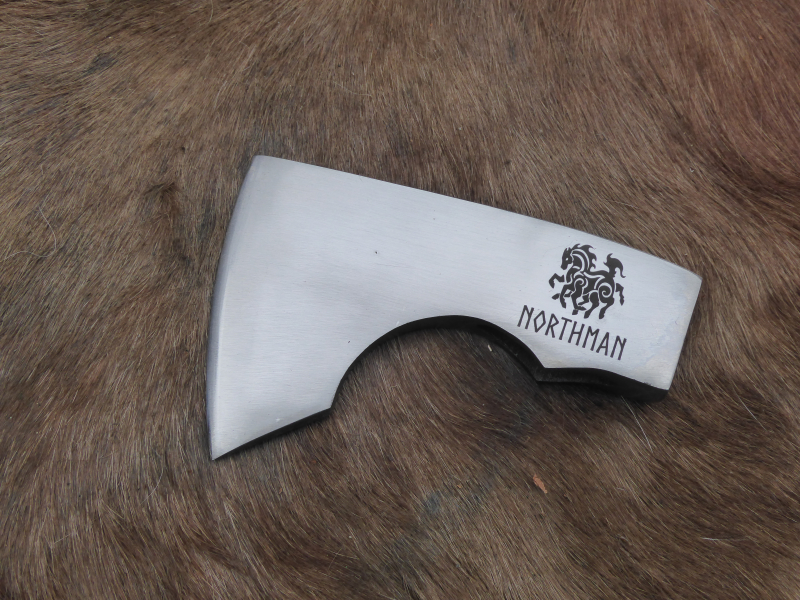 Der Beilkopf wurde in der typischen Kuraseando Form aus 5160er Stahl geschmiedet. Die scharfe Schneide wurde anpoliert und mit dem Markennamen "NORTHMAN" und dem Odins Pferd graviert.