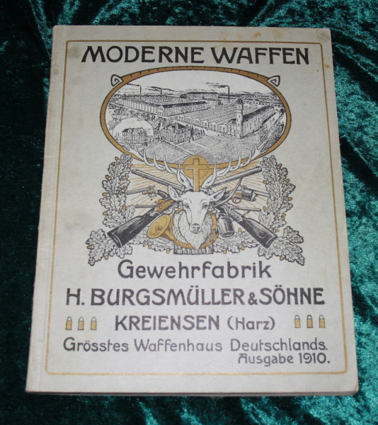 Original Katalog H.BURGSMÜLLER Waffenfabrik 1910 Moderne Waffen, Jagd-Kriegs- und Luxus-Waffen, Munition, Bedarfsartikel u.a. Ganz bebildert auf 176 Seiten. Eine Fundgrube für den Interessierten. Siehe Bilder!