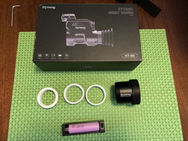 Im Lieferumfang enthalten ist ein Universaladapter mit Schnellverschluss zur Montage an Zielfernrohre , dabei sind auch verschiedene Spacer um den Adapter an verschiedene Okulargrößen anzupassen.