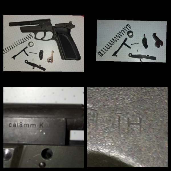 Verkaufe aus Nachlass ,ein Griffstück ( gestempelt mit TH )und diverse Teile einer Browning GPDA 8 .
