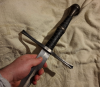 Gesamtlänge ca. 112 cm, Klingenlänge ca. 85 cm. Die Klinge ist schnal, am Gehilz ca. 4 cm breit. Ich hatte keine Gelegenheit, es zu benutzen.