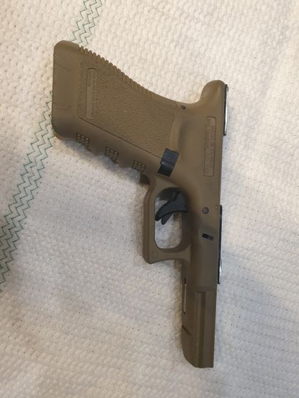 Sie bieten auf das abgebildete, gebrauchte Griffstück einer WE Glock 17. Funktionsfähig.