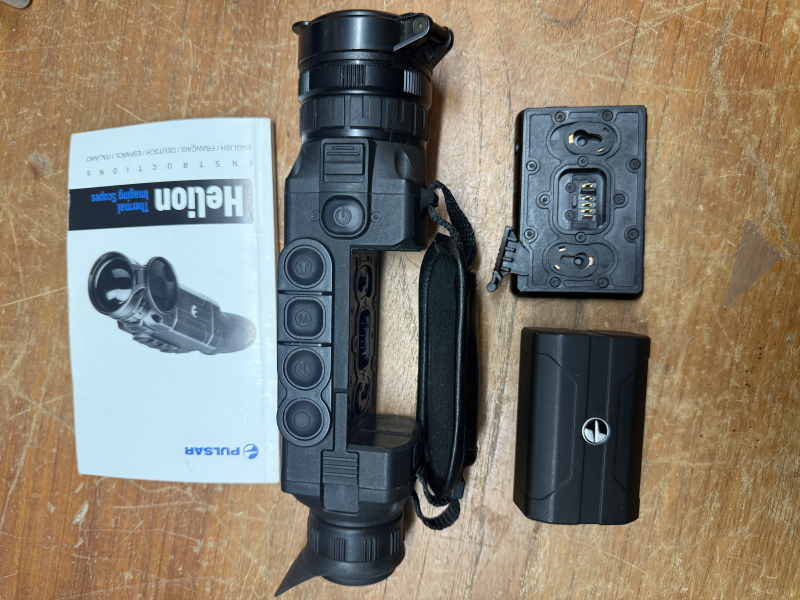 Verkaufe hier eine Wärmebildkamera Pulsar Helion XP50. Das Gerät ist ca. 4 Jahre alt, voll funktionsfähig! Leichte Gebrauchsspuren, da das Gerät immer im Rucksack geführt wurde. Akku ohne Probleme, Linse und Optik ohne Kratzer. Lieferumfang: Pulsar Helion XP50, Akku, Akkuschale, Ladekabel, Handschlaufe und Handbuch.