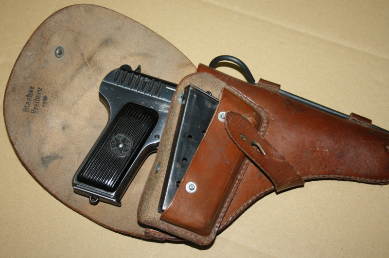 Aus einer großen Sammlung kommt hier diese russische Tokarev TT33 im Kal. 7,62x25 zur Auktion. Sie stammt aus 1936er Fertigung und ist nummerngleich und im originalen, schönen Zustand. Lauf und Funktion natürlich einwandfrei. Inklusive zeitgenössischem Lederholster und Reserve-Magazin.