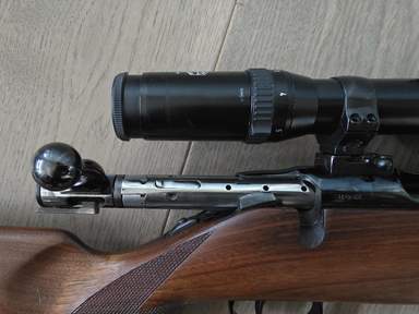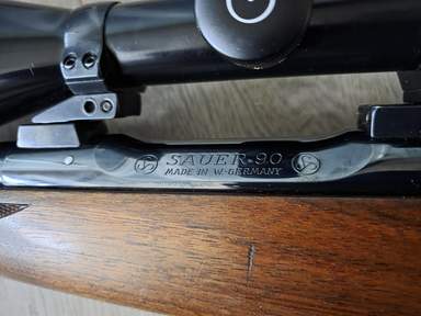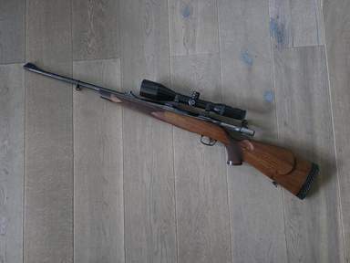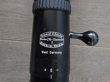 Zum Verkauf kommt eine Sauer 90 im Kaliber .30-06 Spring mit einem Schmidt- u. Bender Zielfernrohr 2,5-10x56 Leuchtabsehen 4. Die Waffe ein ein paar kleinere Gebrauchsspuren im Holz und an der Mündung wurde eine kleine Stelle nachbrüniert (Zustand siehe Bilder).