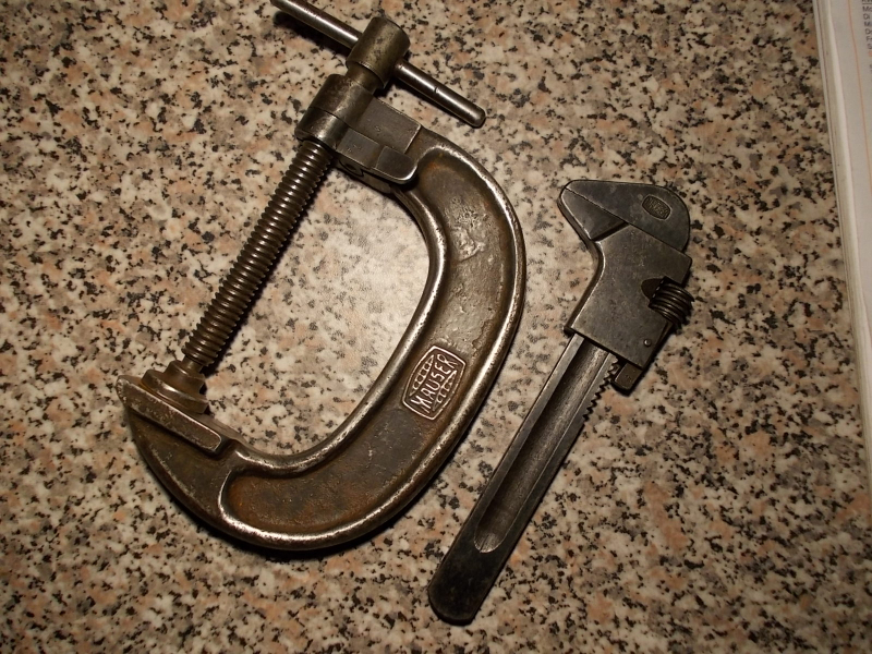 Das Set hier besteht aus einer Zwinge und einem Rollgabelschlüssel ( Engländer ). Die Funktion ist gegeben.