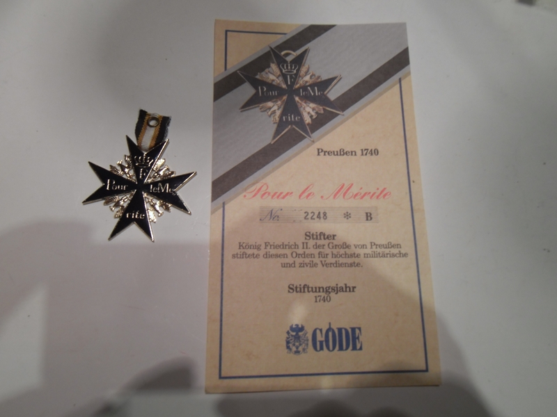 Orden: Pour le Mérile, Preußen 1740, Stifter König Friedrich II. der Große von Preußen stiftete diesen Orden für höchste militärische und zivile Verdienste, Stiftungsjahr 1740. Sammlerexemplar der Fa. Göde – KOPIE mit Ursprungs-Zertifikat. Guter Zustand.