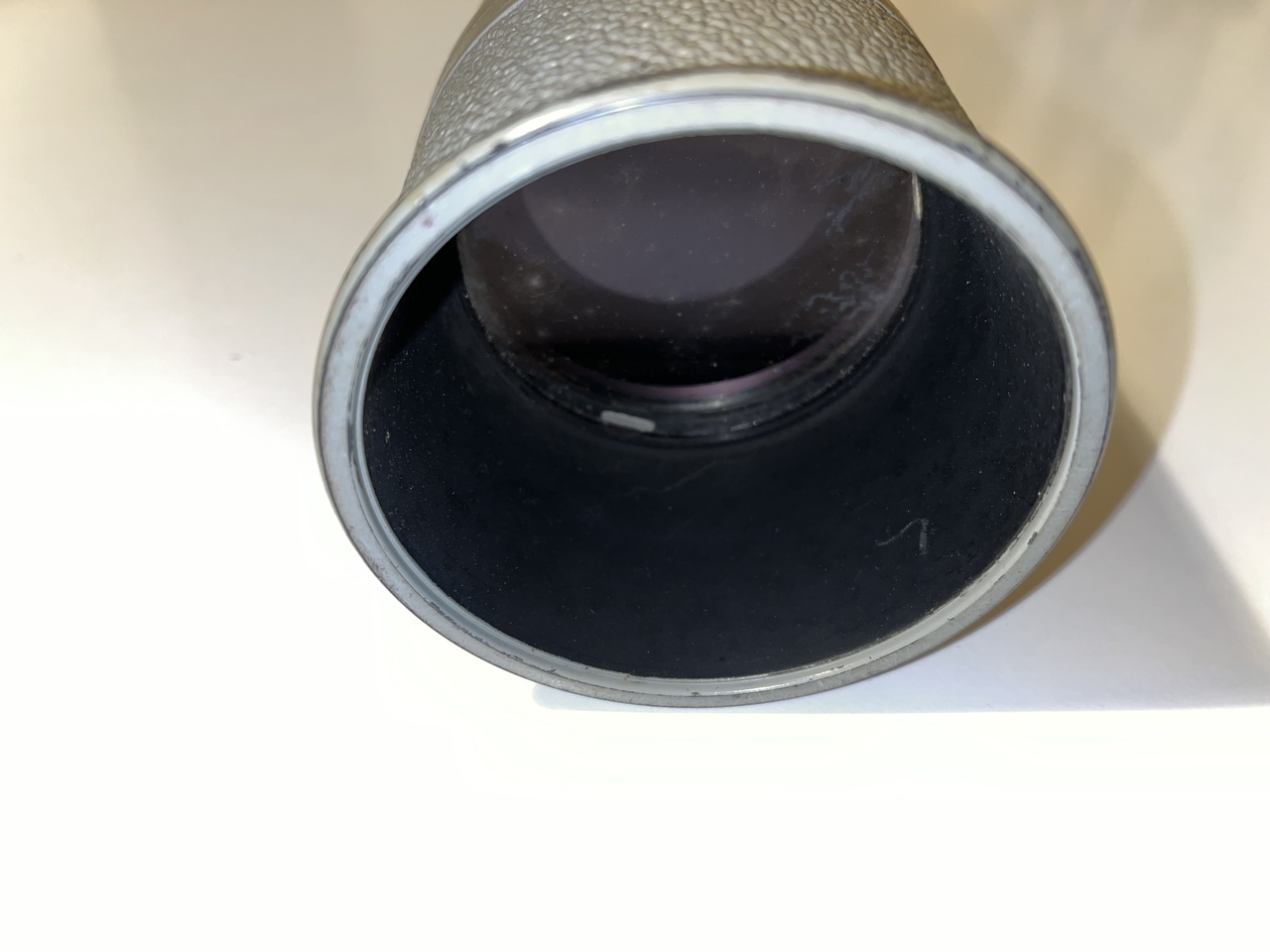 das gezeigte Asiola Spektiv, die originale Ledertasche und das originale 16-O Okular.