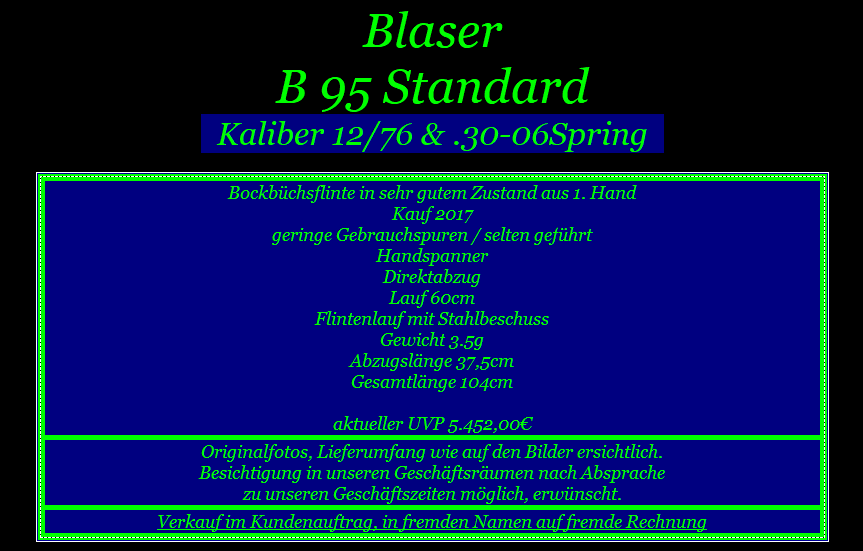 Blaser B 95 Standard Kaliber 12/76 & .30-06Spring.