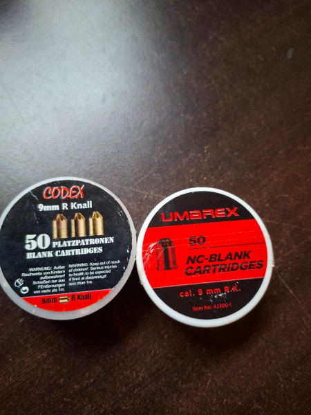 Zwei Päckchen 9 mm R. Platzpatronen für Revolver und die legendäre HW 94 !!!! Es können Auktionen gesammelt werden, so verbilligen sich die Versandkosten für Sie.