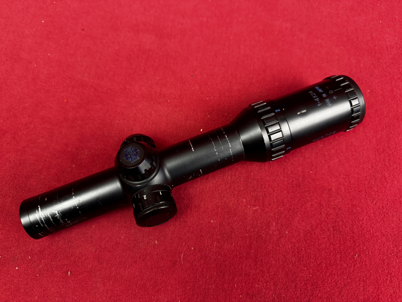 Es handelt sich hier um ein Zielfernrohr Hakko 1-4x24, Made in Japan, das Glas wird als defekt verkauft und ist vom Umtausch ausgeschlossen, als Defekt deshalb weil es Gebrauchsspuren hat (siehe Fotos). Die Linsen sind klar und das hinduchsehen ist in Ordnung. Für ein Drückjagdglas völlig ausreichend. Der Leuchtpunkt wurde nicht getestet. Es wird ohne Batterie geliefert.