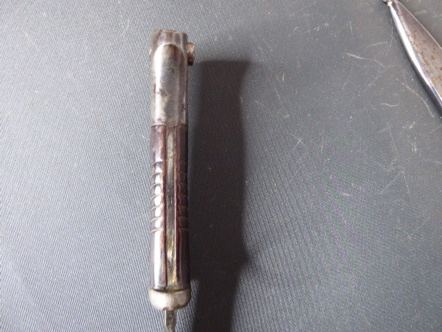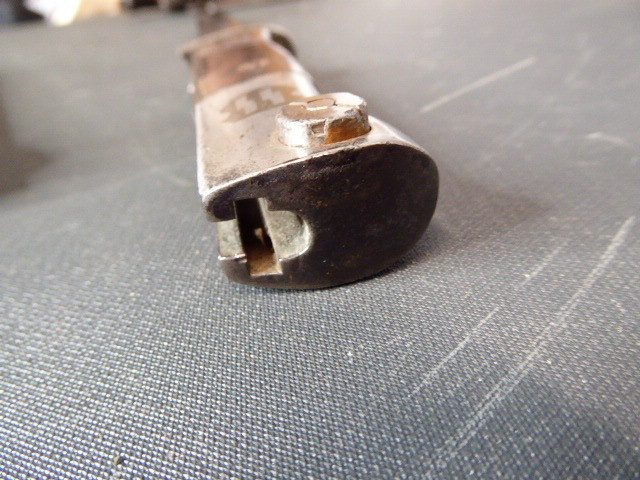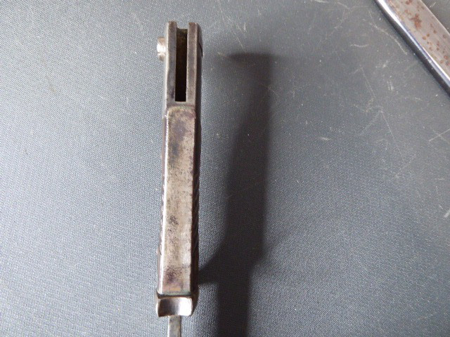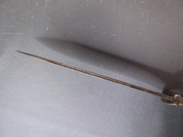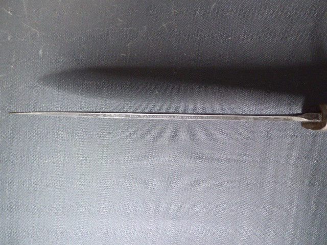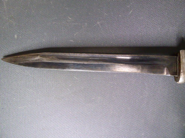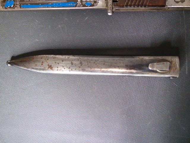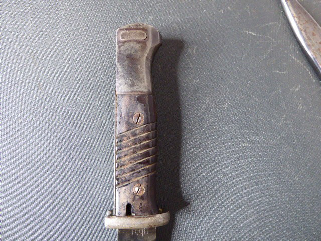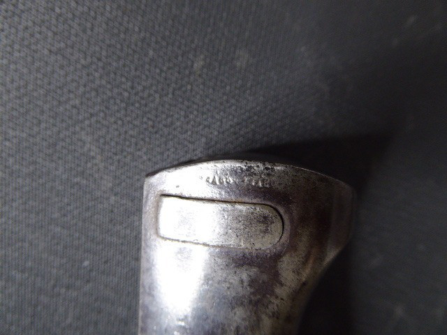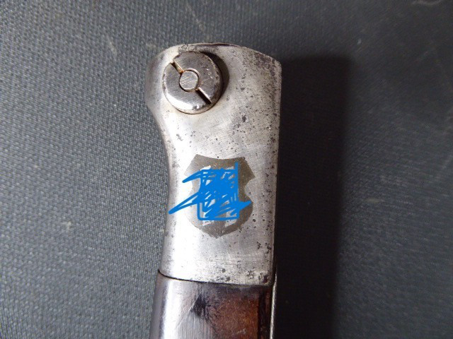 Aus meiner Sammlung gebe ich, ein 94/98 3. Reich Bajo Hersteller Code 41 cqh andere Seite Nr. 3886 g mit Scheide ab. Griff zwei braune Bakelit Schalen. Griffknauf mit Punze und einseitig XX Ätzung. Klinge einseitig mit Ätzungen, zur Erinnerung meiner Dienstzeit. Klinge auf der Fehlschärfe eine Seite mit Nr. 3886 g, andere Seite mit Code 41 cqh. Original brünierte Scheide mit Hersteller JOS CORTSS 1938. Ob die Ätzungen Zeitgenössig sind? kann ich nicht unterscheiden und auch nicht sagen, sieht auf jedenfalls sehr Gut aus, könnte auch original sein? aber das muss jeder für sich entscheiden, die Fotos sind Aussagekräftig genug. Das Teil ist im Guten Sammelwürdigen Zustand. Alles andere entnehmen Sie Bitte den Fotos. Gesamtlänge: 40,6 cm, ohne Scheide: 38,3 cm, Klingenlänge: 25 cm, Klingenbreite: 2,5 cm. Kann zu jederzeit bei mir besichtigt werden. Privatauktion keine Rücknahme und Garantie.