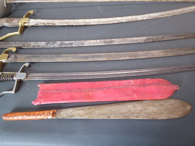 Aus meiner Sammlung gebe ich, ein großes Konvolut von 8 langen Blankwaffen davon 2 Deko Teile als Ersatzteilspender für Bastler ab. Sind alles Teile die man zum Basteln nehmen kann und noch Sammelwürdig. Alles andere entnehmen Sie Bitte den Fotos. Kann zu jederzeit bei mir besichtigt werden. Privatauktion keine Rücknahme und Garantie.