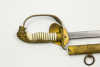 Marine-Säbel, Deutschland, Anf. 20. Jh., vergoldetes Bügelgefäß mit Löwenkopfabschluss, Augen aus zwei Glassteinen in rot (Backbord) und grün (Steuerbord), ausgesuchter Elfeneingriff mit Drahtwicklung, Gefäß mit zwei Klappscharnieren und Eichenlaubverzierungen mit Kaiserkrone, am inneren Scharnier Besitzerbezeichnung "Koch?", Stechrückenklinge von WKC in Streifendamast, Lederscheide mit drei vergoldeten und mit Eichenlaub verzierten Beschlägen, plastisch ausgearbeitete Tragbänder in Form von Eichenlaub, Trageringe verziert, unberührtes Stück mit Patina, hierbei kann es sich um ein Ehrenstück oder eine Luxuswaffe handeln, es gibt äußerst wenig bekannte Stücke dieser Ausführung, Gebrauchsspuren. L: 94 cm.
