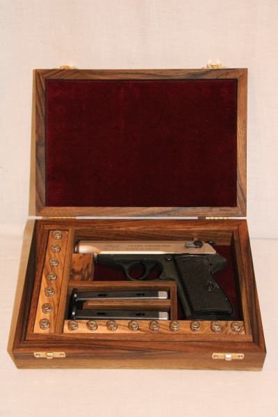 Kassette für eine Pistole Walther PP aus massivem Nussbaum