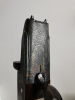 "72 cm Läufe mit konkaver Schiene, Messingkorn, Choke 1/2 & 3/4, Ejektoren, buntgehärtetes gerundetes Baskül, flächendeckend graviert mit feinsten englischen Arabesken durchstreut mit Rosenblüten, Seitenschlosse mit vorliegenden Federn, Fangstangen, von vorne eingesetzte Zündstifte, nicht automatische Schiebesicherung auf dem Kolbenhals, Doppelabzug mit Ausweichzüngel, Horn-Abzugsbügel, schön gemaserter Nussholzschaft mit flachem Pistolengriff, Zierlinie und Gummikappe 36,5 cm, goldenes Schaftmonogrammplättchen mit Monogramm "DER", Vorderschaft mit Anson-Drücker, 3,1 kg, BJ 1942, alte Rostnärbchen auf der Schiene und an der linken Laufseite nahe dem Vorderschaft, sonst fachmännisch restauriert zu Zustand 2"