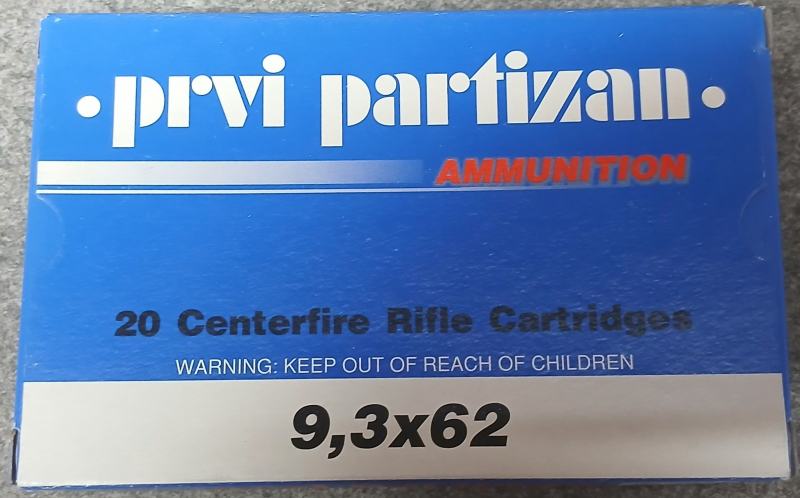 100 Patronen prvi partizan Kal. 9,3x62TM 18,5 Gramm gleiche Losnummer