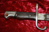Der Bajonettdrücker fehlt, obwohl nummerngleich klemmt das Bajonett in der Scheide etwas. Gesamtlänge 520 mm. Klingenlänge 397 mm. Insgesamt guter Zustand mit leichten Gebrauchsspuren.