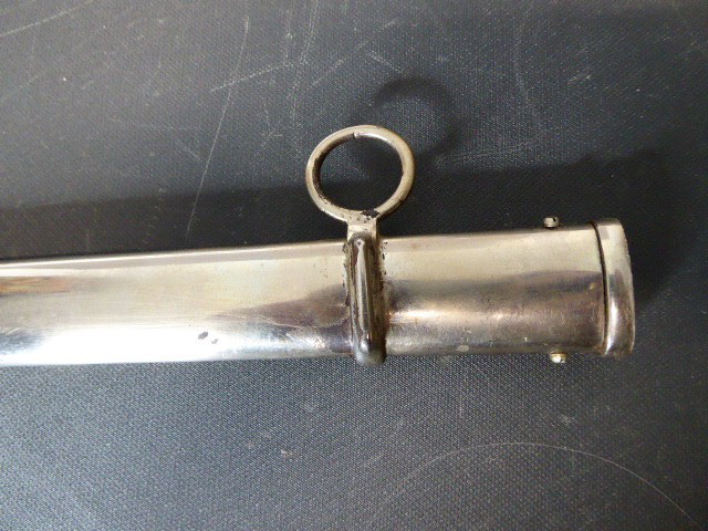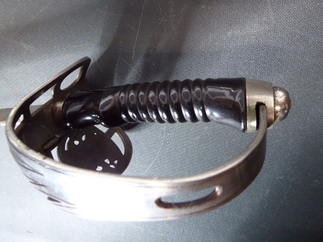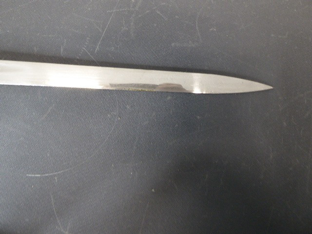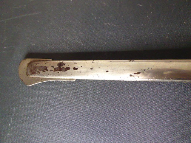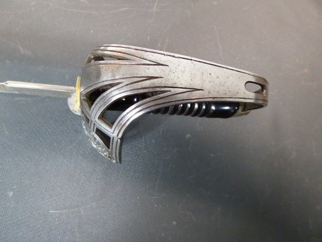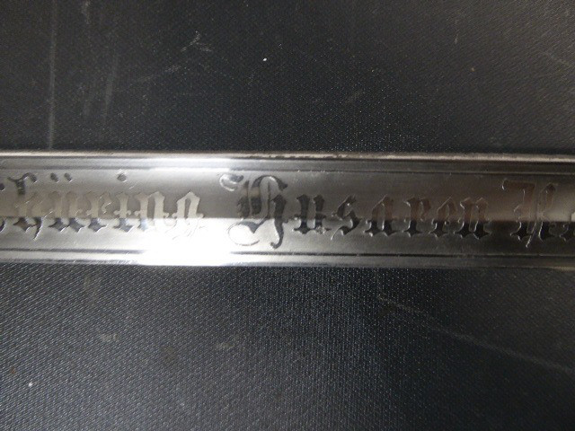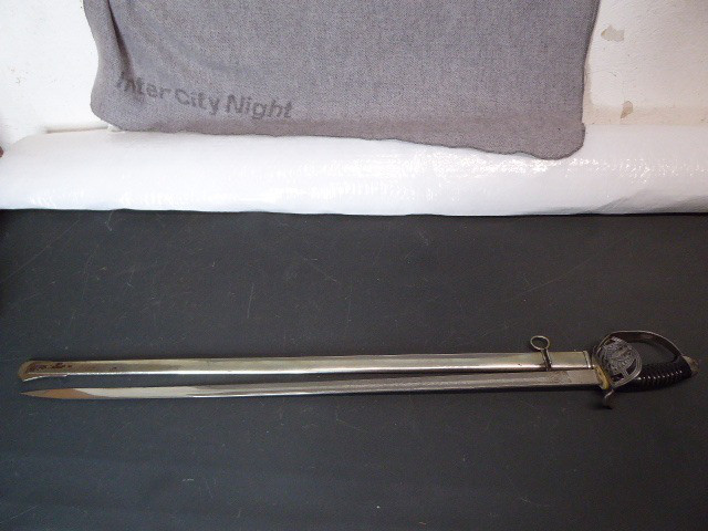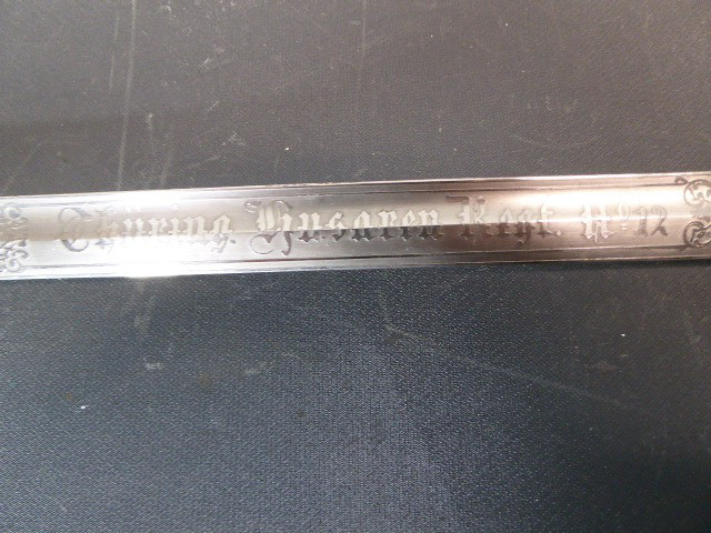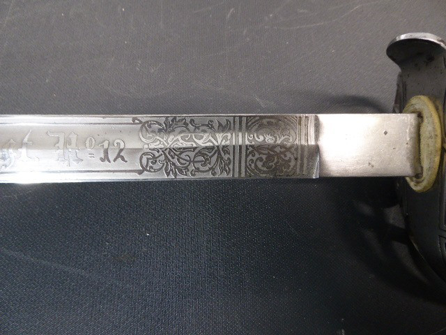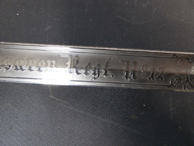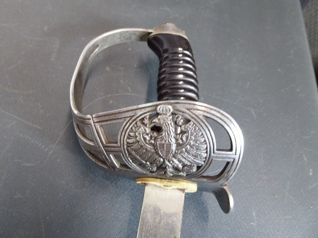 Aus meiner Sammlung gebe ich, ein alten langen Preußischen Kavallerie Degen vom Thüring. Husaren Regt. Nr. 12 mit Scheide ab. Sehr seltener Husaren Degen. Griff Bakelit. Gefäß Eisen Vernickelt einseitig zum abklappen. Einschneidige Klinge beidseitig mit Hochätzungen eine Seite mit Regiment Bezeichnung, Thüring. Husaren Regt. Nr. 12. Original Vernickelte Scheide aus Stahl mit einem festen Tragering und Trage Öse. Das Teil ist im Guten Sammelwürdigen Zustand. Alles andere entnehmen Sie Bitte den Fotos. Gesamtlänge: 93,5 cm, ohne Scheide: 91,5 cm, Klingenlänge: 78 cm, Klingenbreite: 2,4 cm. Kann zu jederzeit bei mir besichtigt werden. Privatauktion keine Rücknahme und Garantie.