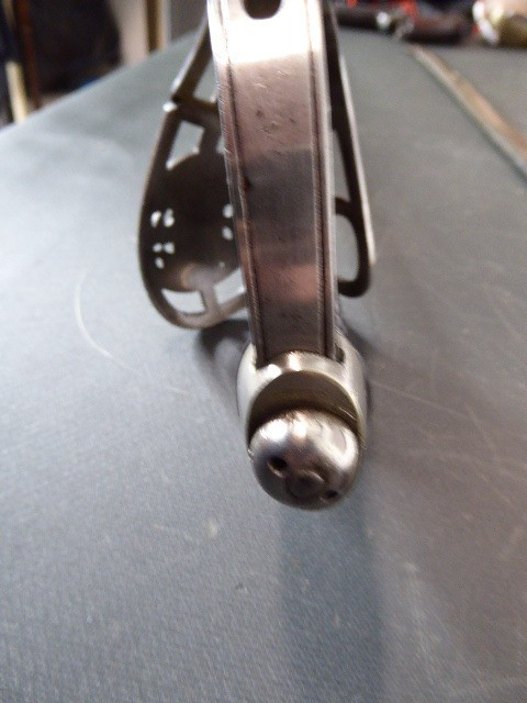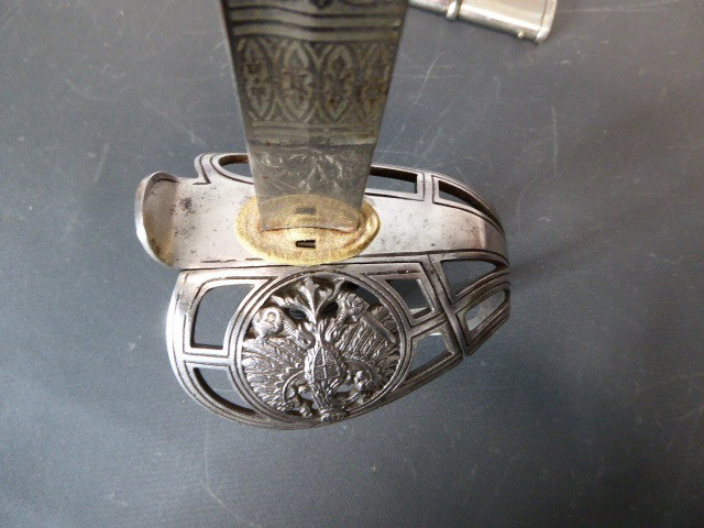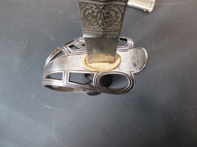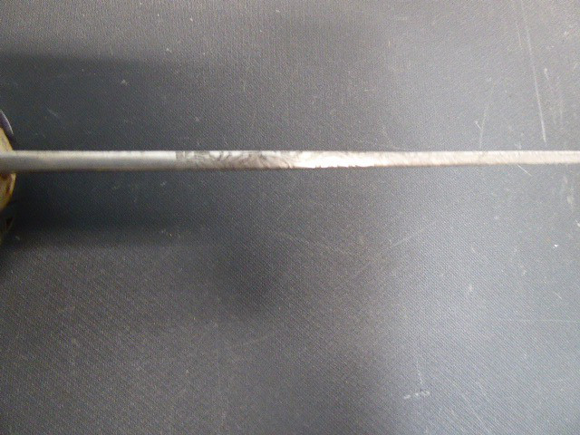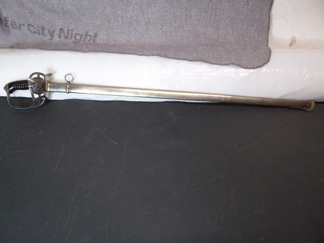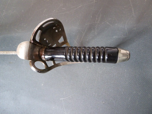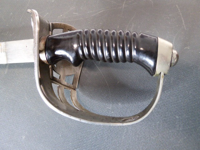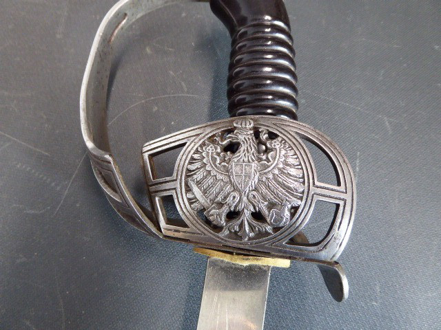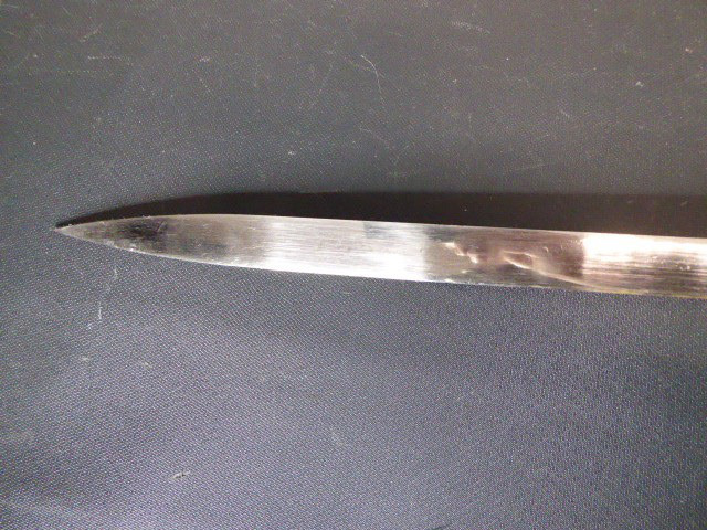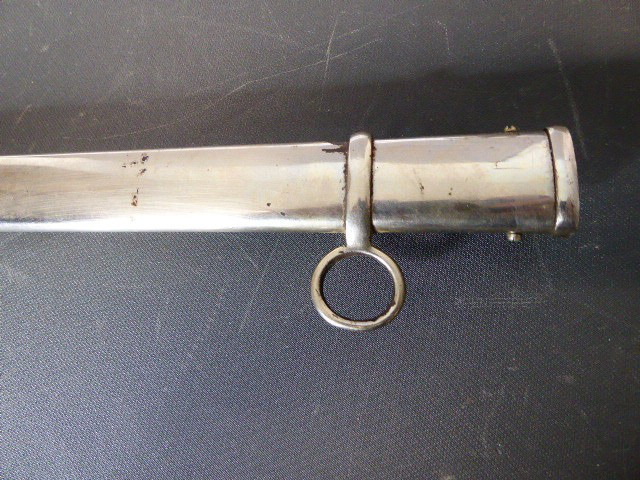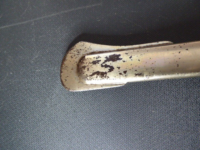 Aus meiner Sammlung gebe ich, ein alten langen Preußischen Kavallerie Degen vom Thüring. Husaren Regt. Nr. 12 mit Scheide ab. Sehr seltener Husaren Degen. Griff Bakelit. Gefäß Eisen Vernickelt einseitig zum abklappen. Einschneidige Klinge beidseitig mit Hochätzungen eine Seite mit Regiment Bezeichnung, Thüring. Husaren Regt. Nr. 12. Original Vernickelte Scheide aus Stahl mit einem festen Tragering und Trage Öse. Das Teil ist im Guten Sammelwürdigen Zustand. Alles andere entnehmen Sie Bitte den Fotos. Gesamtlänge: 93,5 cm, ohne Scheide: 91,5 cm, Klingenlänge: 78 cm, Klingenbreite: 2,4 cm. Kann zu jederzeit bei mir besichtigt werden. Privatauktion keine Rücknahme und Garantie.