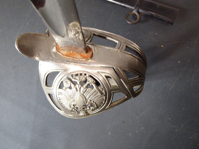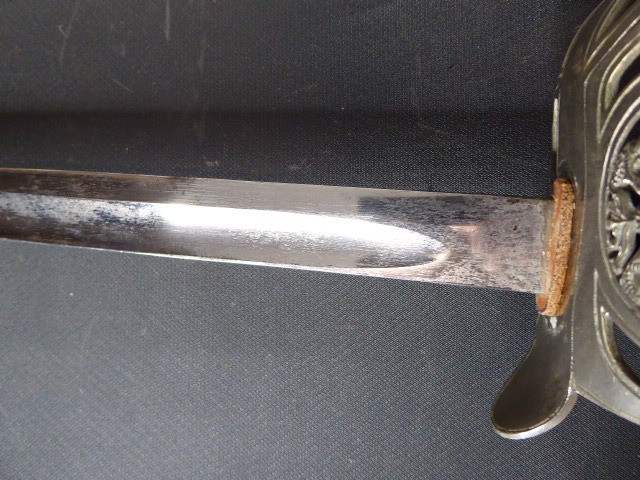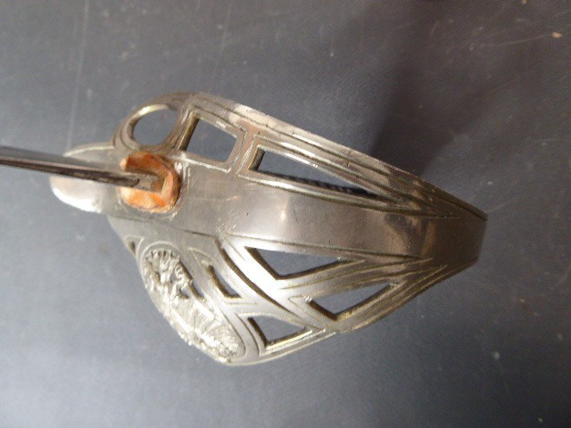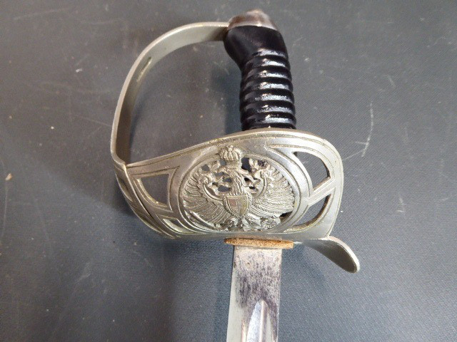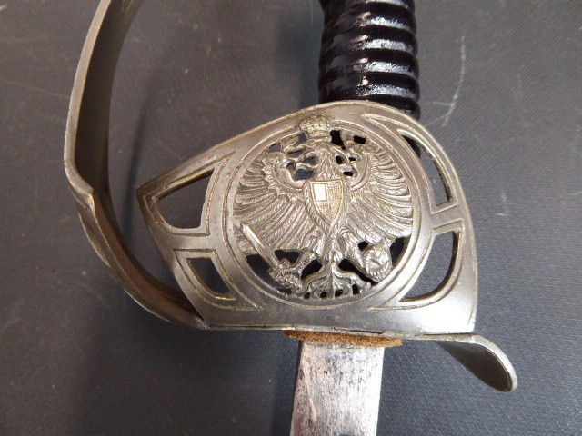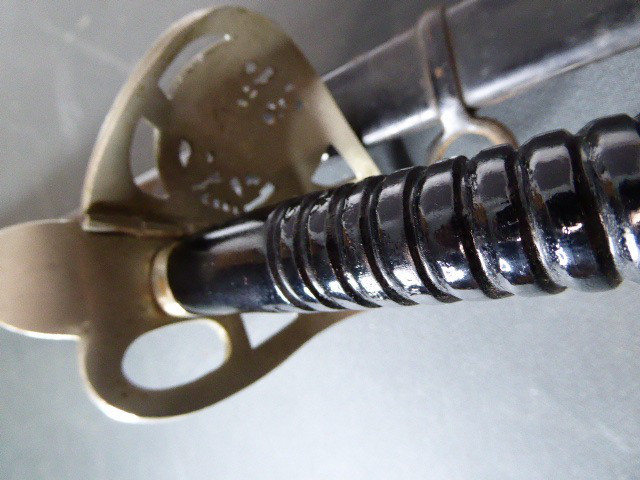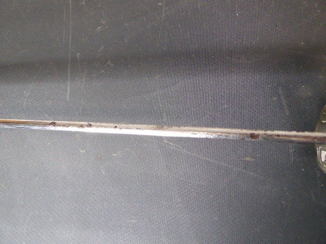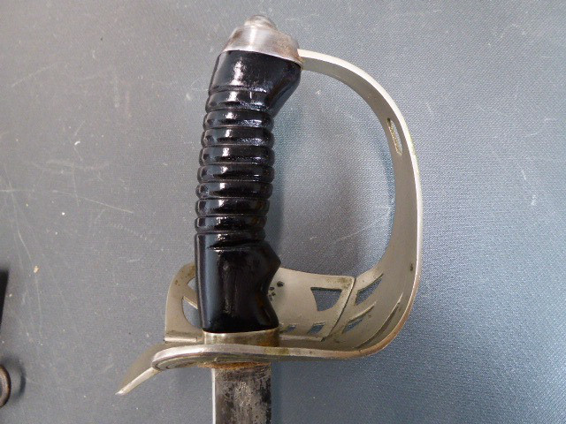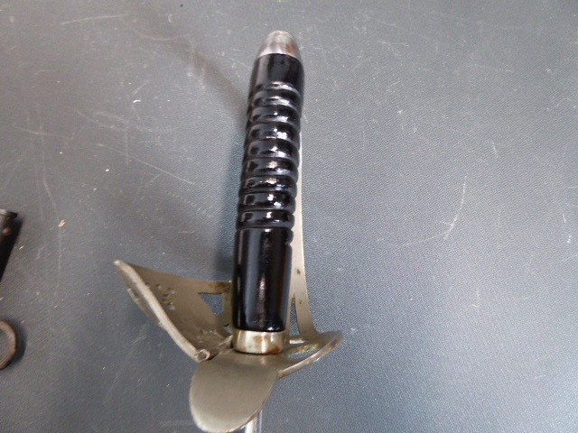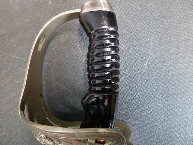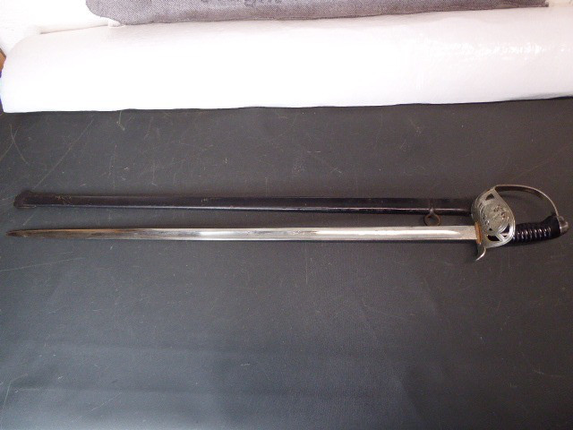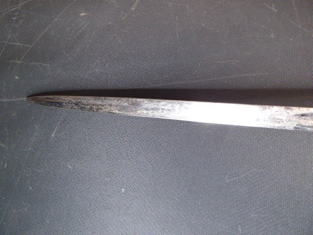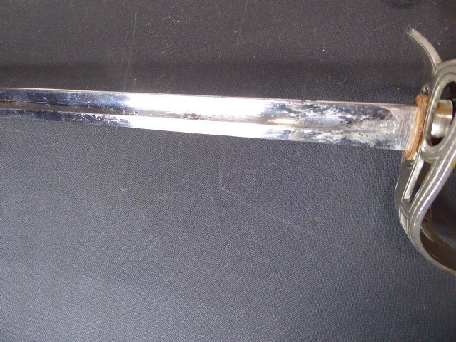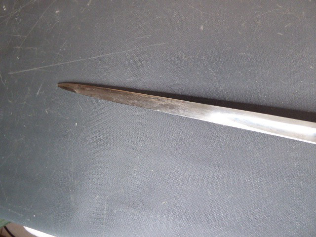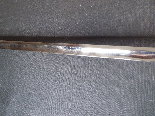 Aus meiner Sammlung gebe ich, ein alten langen Preußischen Extra Kavallerie Degen mit Scheide Hersteller kleines Eickhorn C.E. ab. Griff Bakelit/ Holz? wurde mal schwarz nachlackiert. Gefäß nicht Magnetisch Vernickelt einseitig zum abklappen. Einschneidige Klinge beidseitig mit Kehlungen und einseitig mit Hersteller kleines Eickhorn C.E. Scheide Stahl mit Original Lack. Das Teil ist im Guten Sammelwürdigen Zustand. Alles andere entnehmen Sie Bitte den Fotos. Gesamtlänge: 94,7 cm, ohne Scheide: 92,5 cm, Klingenlänge: 78,5 cm, Klingenbreite: 2,3 cm. Kann zu jederzeit bei mir besichtigt werden. Privatauktion keine Rücknahme und Garantie.