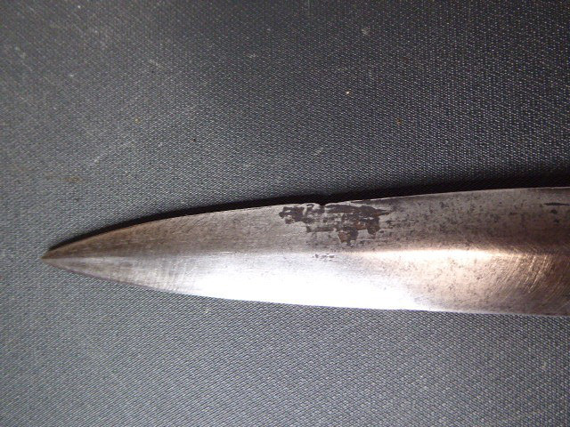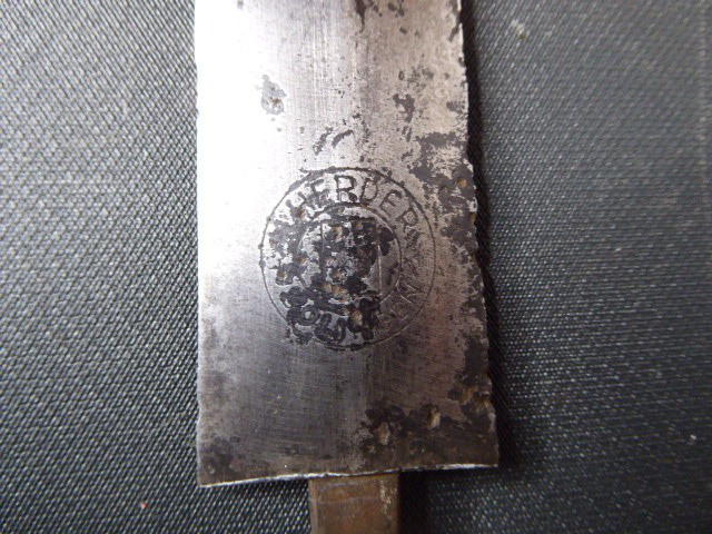Aus meiner Sammlung gebe ich, eine alte XA Dolch Klinge mit Hersteller HERDER SOLINGEN ab. Zweischneidige Klinge Teilweise mit starkem Rost, Hersteller HERDER SOLINGEN. Die Klinge ist noch zu gebrauchenden Zustand, mit etwas Geschick kann noch was daraus machen. Gesamtlänge: 33,8 cm, ohne Angel: 22,4 cm, Klingenbreite: 3,4 cm. Alles andere entnehmen Sie Bitte den Fotos. Kann zu jederzeit bei mir besichtigt werden. Privatauktion keine Rücknahme und Garantie.