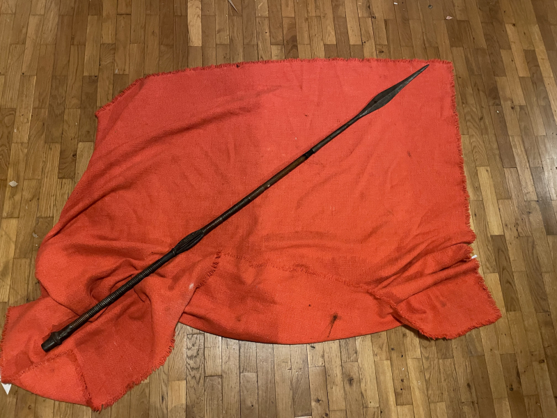Antiker Spies Speer Lanze vermutlich Afrika Holz geschnitzt mit Kupferwicklung geschmiedete Spitze