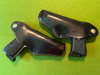 Es handelt sich hier um ein Paar traditionellen Gürtelholster, jeweils Links- und Rechtshand mit einer einfacheren Bauweise. Aus schwarzem Leder, geschlossen am Lauf, sie haben den für diese Art Holster typisch aneinander liegenden Druckknopfverschluss, hier sichtbar auf der Rückseite