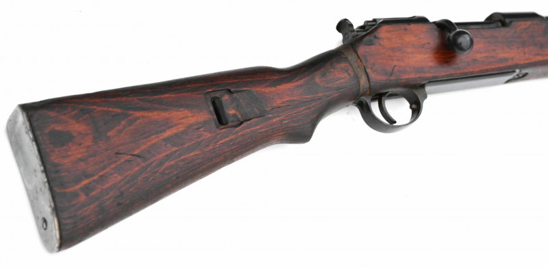 Waffennummer „1563m“ bzw. „1563“ oder auch nur Endnummern „63“ auf Schaftunterseite, Hülse, Lauf, Visier, allen Schlossteilen, Abzugbügel, Schaftunterseite, beiden Oberringen, Kolbenhalsring und Magazinkastendeckel sehr gut lesbar. Auf der etwas geputzt wirkenden, leicht fleckigen und partiell leicht narbigen Schaftkappe ebenfalls "1563".