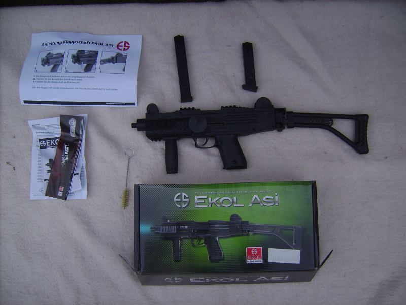 Hier für Euch ein Silvesterknaller.Sie kaufen hier ein EKOL-Asi-Maschinenpistole mit halbautomatik im cal.9mm/Pak.im neuwertigen Vitrinenzustand,die so schon lange nicht mehr Hergestellt und Verkauft wird ohne große Gebrauchsspuren.Sie hat die PTB 1000.Die Waffe hat einen einklappbaren Schaft und verkürzt somit die Waffe auf eine Länge von 38 cm,die Gesamtlänge währe 59cm.Die Waffe wird mit einer AK 47 Mündungsmutter (dadurch viel bessere Optik) und einen langen 25 Schuss und einen kurzen 15 Schuss Magazin im Original Karton mit Bedienungsanleitung,so wie auf Bild Nr.1 geliefert.Weitere Magazine für die EKOL ( verlängertes 30 Schuss Magazin und ein 15 Schuss Magazin) in einer meiner anderen Auktion.HINWEIS: Der Artikel wird wie abgebildet und beschrieben angeboten/geliefert und von mir als Privatperson verkauft. Ich schließe jedwede Gewährleistung oder Haftung (EU-Recht etc.) aus. Rücknahme und/oder Nachverhandlungen sowie Kaufpreisrückerstattung finden nicht statt. Kaufen Sie nur wenn Sie damit einverstanden sind und stellen Sie Ihre Fragen bevor Sie kaufen. Der Versand erfolgt immer nur am Freitag nach erfolgten Geldeingang an mich und der an die von Ihnen hier bei egun hinterlegten Adresse als versichertes DHL-Paket für 9,00,-€ mit Sendungsverfolgungsnummer,die dem Käufer mitgeteilt wird.Kein Versand in die EU.Für den Fall, das die Ware auf dem Postweg verloren geht,oder beschädigt wird, übernehme ich keine Haftung und leiste keinen Schadenersatz. Bitte nehmen Sie die Zahlung innerhalb von 5 Tagen nach Ihren Kauf.++Bitte meine weiteren Auktionen beachten.Da Privatverkauf keine Garantie und Rücknahme und Kaufpreisrückerstattung. Kein Versand ins Ausland nur nach Deutschland/Inseln teurer. Das Runde Ding am Spannhebel ist natürlich bloß ein Transportschutz.Gruss K.K.