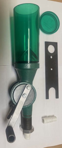 RCBS Uniflow Pulverfüller, ausgerüstet mit dem "Pulverdach" für gleichmäßige Ladungen.