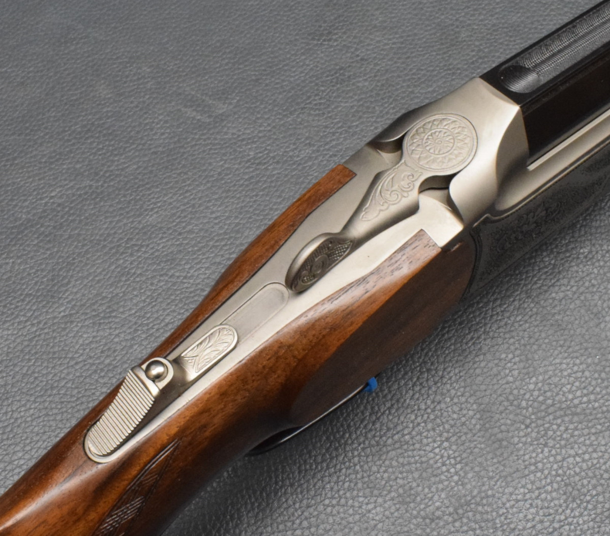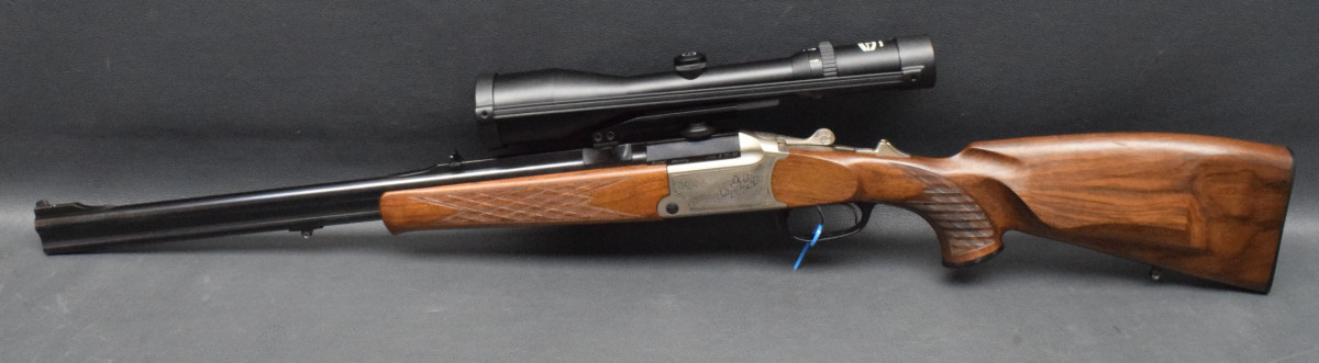 Lauflänge 60,5 cm, Schaftlänge 36,5 cm trockene feine Direktabzüge, Spannschieber auf dem Kolbenhals, montiert mit Blaser Schwenkmontage