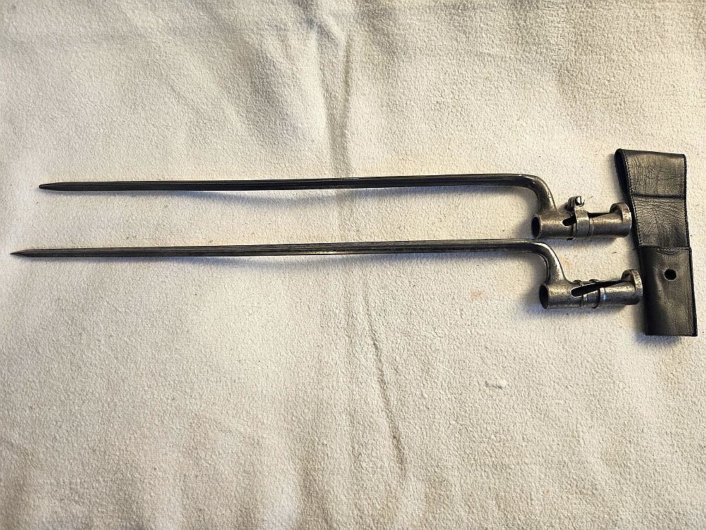 Eines der Bajonette mit Lederscheide (siehe Fotos).