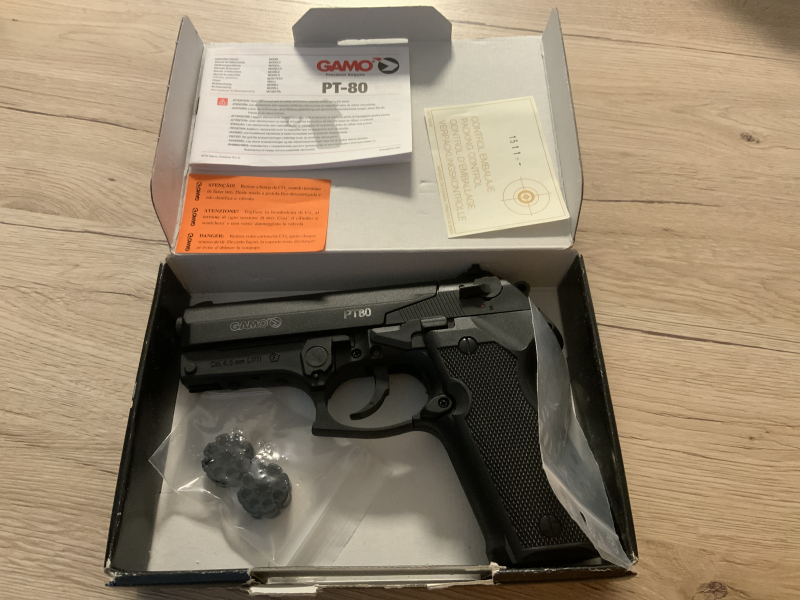 Gamo PT-80 Cal.4,5 mm Luftpistole Inklusive Zubehör im Karton wie neu aus Vitrine