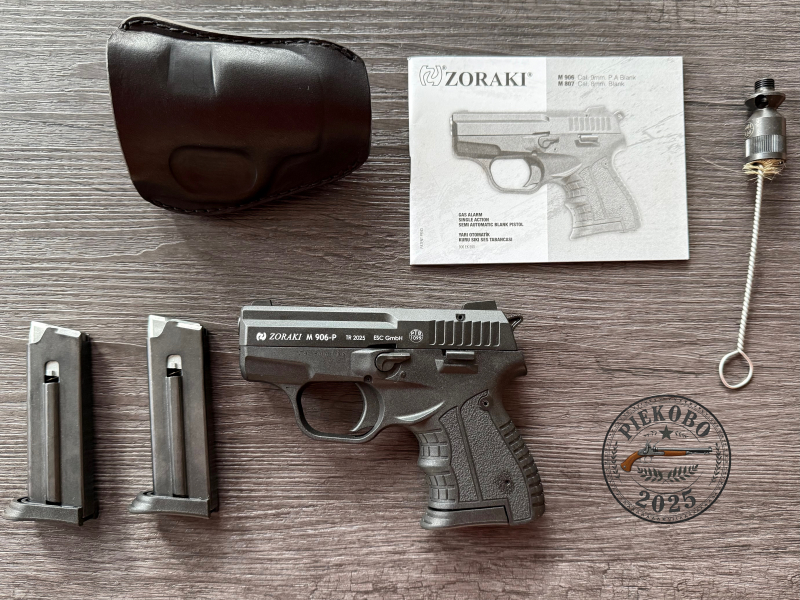 Verkaufe hier eine Zoraki 906 (PTB1099) in der schwarzen Ausführung im Kaliber 9mm P.A.K. Zustand: Ungeschossen - Vitinenwaffe : Zum Lieferumfang gehört ein schönes Lederholster, 2x Zoraki 906 Ersatzmagazine, ein Pyrobecher, die Putzbürste sowie die Anleitung.