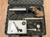 Feinwerkbau P30 mit zwei Kartuschen, original Anleitung m, Fülladapter, Druckmanometer und Koffer. Die Pistole schiesst sehr genau. Die Abzugseinheit hat einen schönen Vorzug und Druckpunkt. Der Abzugszüngel sollte erneuert werden da er einen Riss hat. Die Kartusche die montiert ist hält die Luft. Bei der anderen weiß ich es nicht genau. Für Aktive oder Sammler, ist ja mittlerweile schon ein Sammlerstück. Versendet wird mit DHL (versichert bis 2.500€). Fragen bitte vorab per Mail. Worldwide shipping by request.