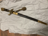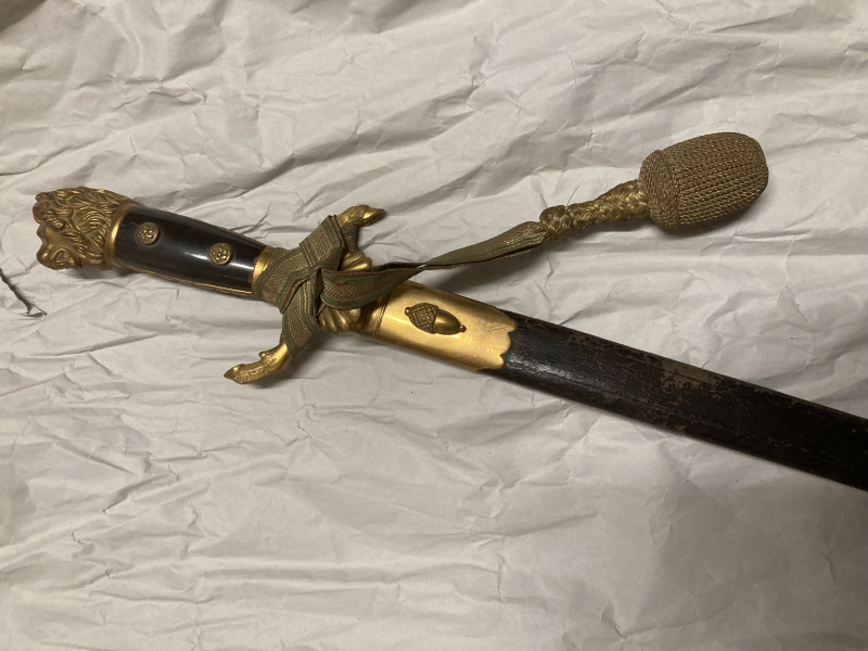 angeboten wird ein historischer Hirschfänger mit Löwenkopf.