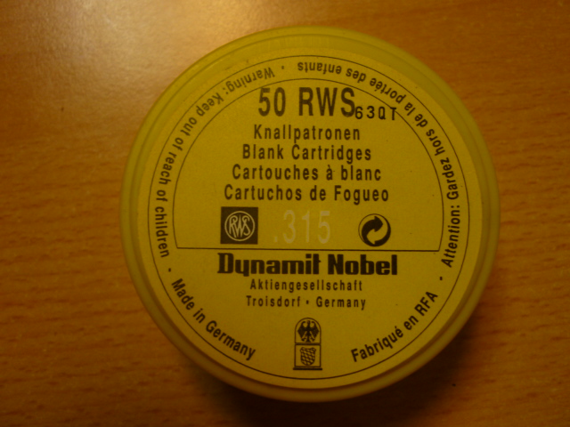 Aus meiner Sammlung eine Dose mit 50 RWS Platzpatronen cal. 315 in der gelben Dose , Messinghülse mit RWS gestempelt , sehr selten gewordene Sammlermunition. Mein Gun beachten.
