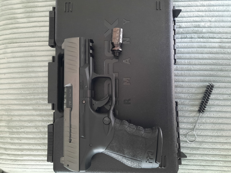 Biete eine neuwertige Walther PPQ grau/schwarz Kal. 9mm P.A.K. - gekauft im Aug. 2025 - gerade mal 3 Schuss zum Testen abgefeuert. Mit Koffer, Abschußbecher - Magazin und Reinigungsbürste. Achtung ! das abgebildete Holster ist für diese Waffe zu klein ! Wenn der Bestbieter es brauchen kann, gebe ich es gerne dazu. Einwandfreie Funktion - keine Garantie - keine Rücknahme. Fragen bitte vorher stellen ! Altersnachweis per Mail, anschließend folgt der Versand.