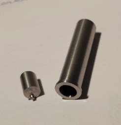 Fangschusshülse aus Edelstahl, Kaliber 38/357 mag auf 22 lfb, 39 mm lang inkl. Schlagstück/Zündumsetzer.