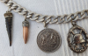 Verkaufe günstig eine Schariwari mit einer Länge von 35cm, mit 7 Anhängern. 2 Anhänger vom Corpsmanöver in Bayern von 1903 und 1913, 2 Geschosse, 1 Zahn, 1 Gamspitze und 1 Verwundetenabzeichen in Silber. 1.WK. Teile wahrscheinlich versilbert, ca. 170g und 120 Jahre alt.