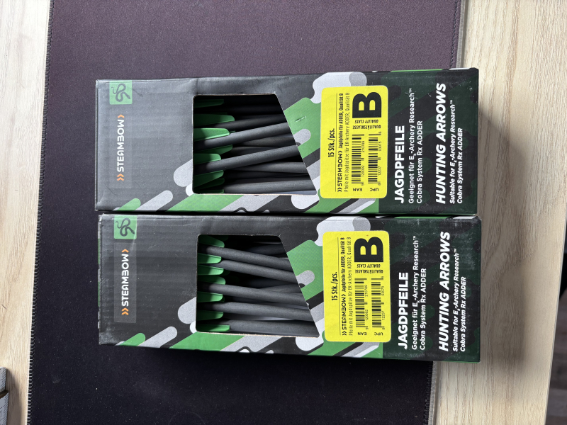 ich verkaufe hier insgesamt 30 Jagdpfeile für die Adder Armbrust von Steambow. Ich habe die Bolzen nie benutzt. Die Bolzen sind jedoch B-Ware, bedeutet die Spitzen sind manchmal schief oder stumpf. Zum üben oder zum selber neu schleifen sind sie gut. Also ausdrücklich keine neuen und perfekten Bolzen! Die Pfeile sind alle B-Ware!