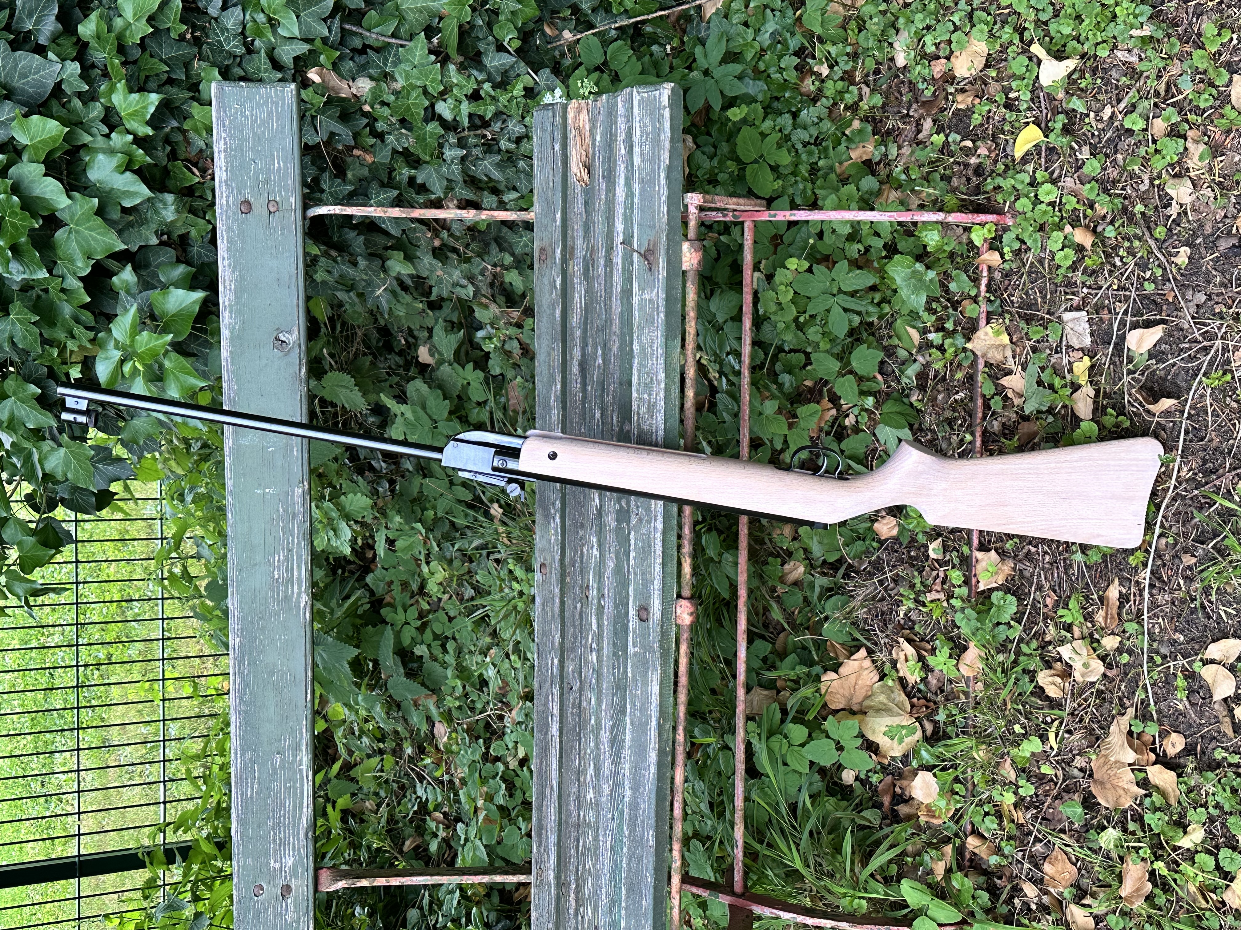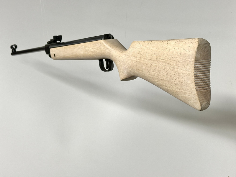 Diana 34 Klassik. Der Schaft wurde geschliffen und mit Hartwachsöl behandelt. Dadurch kommt die schöne Buchenholzmaserung voll zur Geltung. Fünfeck 7,5 Joule. Ich habe 5,7 J gemessen. Metallkimme und Korn.