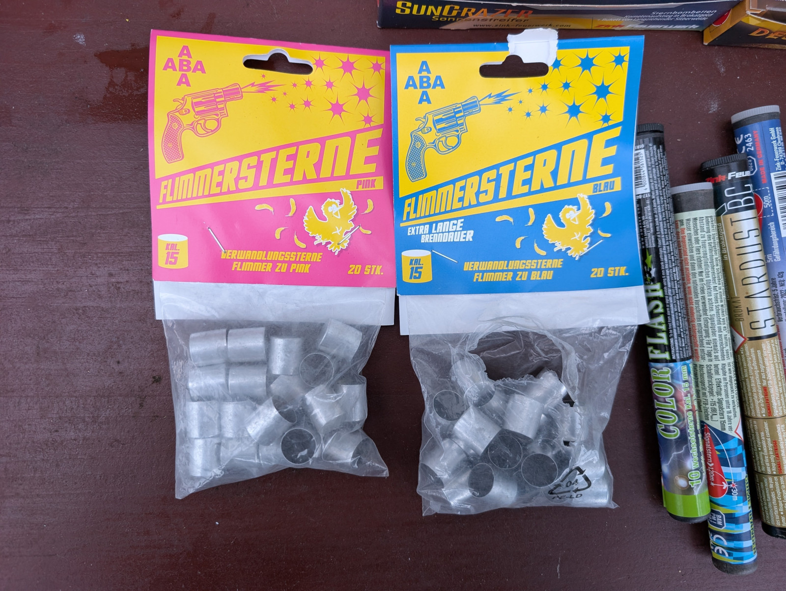 Verkaufe dieses "bunte" Konvolut. Beim rechten Haufen sind die Verpackungen vollständig gefüllt, beim linken Haufen fehlen jeweils geringfügige Mengen. Habe es bestmöglich fotografiert