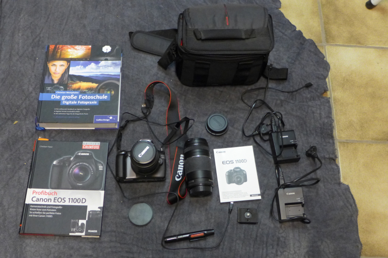 Gehäuse braun mit EFS 18-55 u. UV-Filter und EFS 75-300