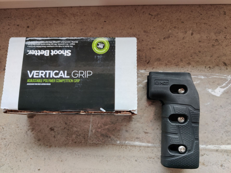 Zur Auktion gebrauchter Vertikal Griff von MDT. Hier noch die alte Version mit drei Schrauben. Der Haupt unterschied zum neuen ist der Griffkern welcher an Chassie geschraubt wird. Der ist beim neuen nur noch aus Polymer bei dem hier angebotenen Griff noch aus Aluminium gefertigt.